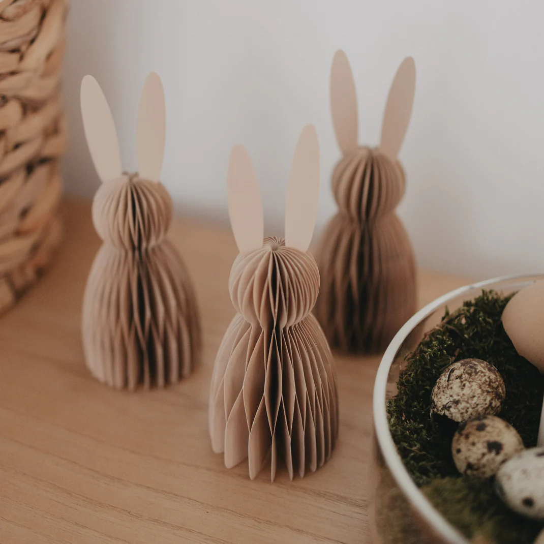 Natürlich und wunderbar zeitlos: Unser Papierhasen 3er Set klein in Natur bringt eine sanfte, authentische Osterstimmung in dein Zuhause. Die warmen Naturtöne wirken ruhig und harmonisch und lassen sich perfekt mit Holz, Keramik, Leinen oder frischen Zweigen kombinieren.