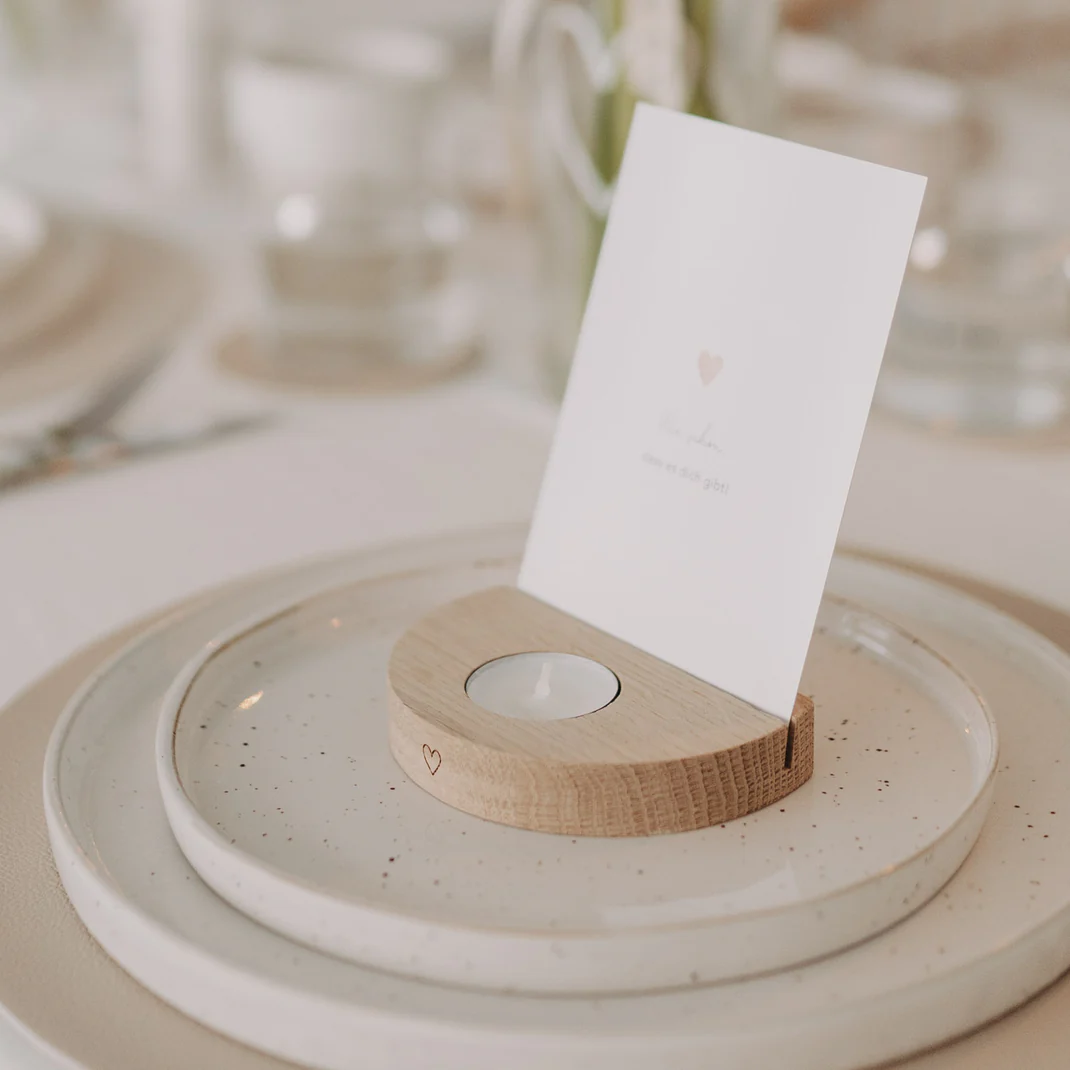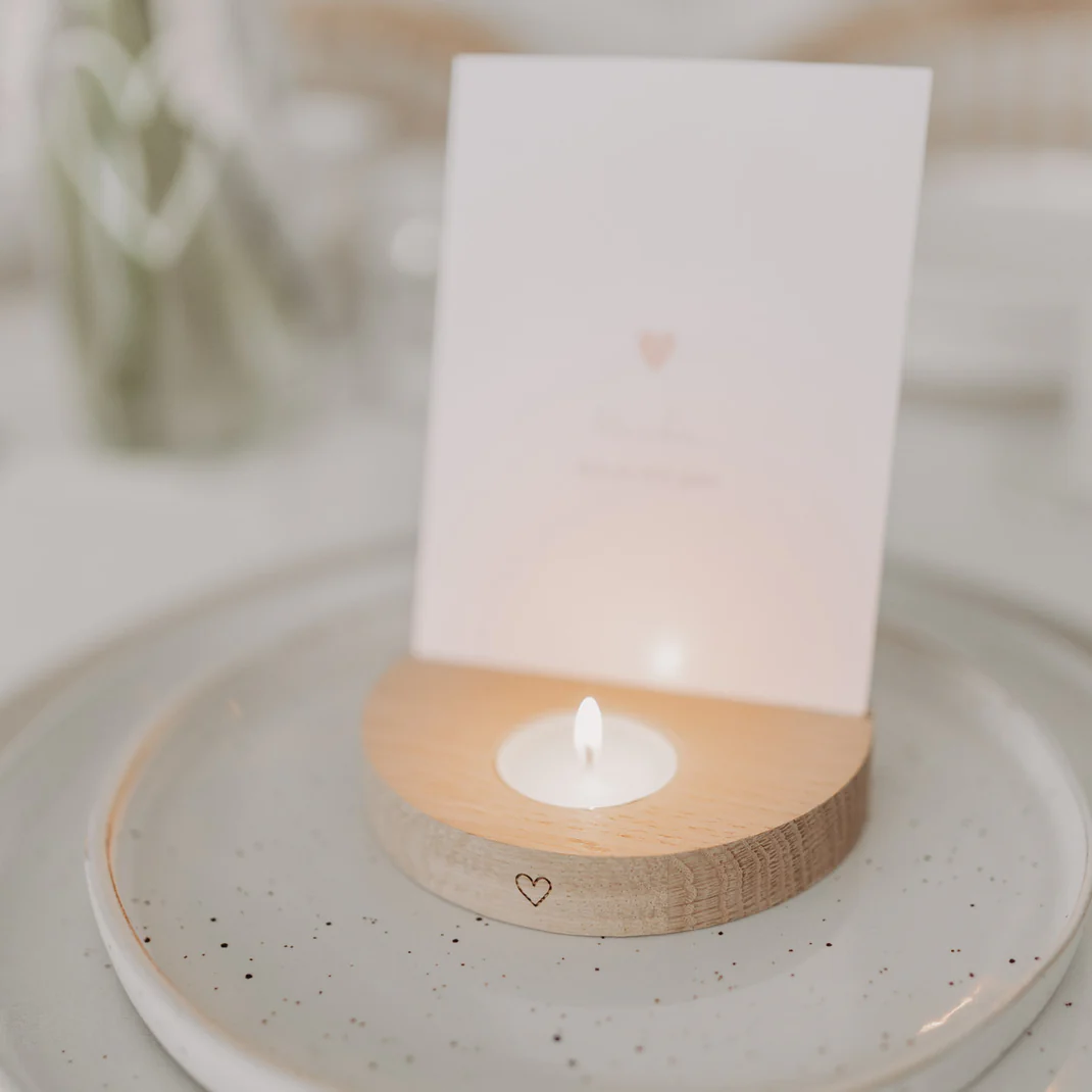 Der Halter bietet Platz für ein Teelicht in der integrierten Aussparung und gleichzeitig eine praktische Schlitzhalterung für Karten, Fotos oder kleine Botschaften. So wird jeder Moment – ob Geburtstag, Jubiläum, Hochzeit, Einzug oder einfach ein „Ich denke an dich“ – zu etwas ganz Besonderem.