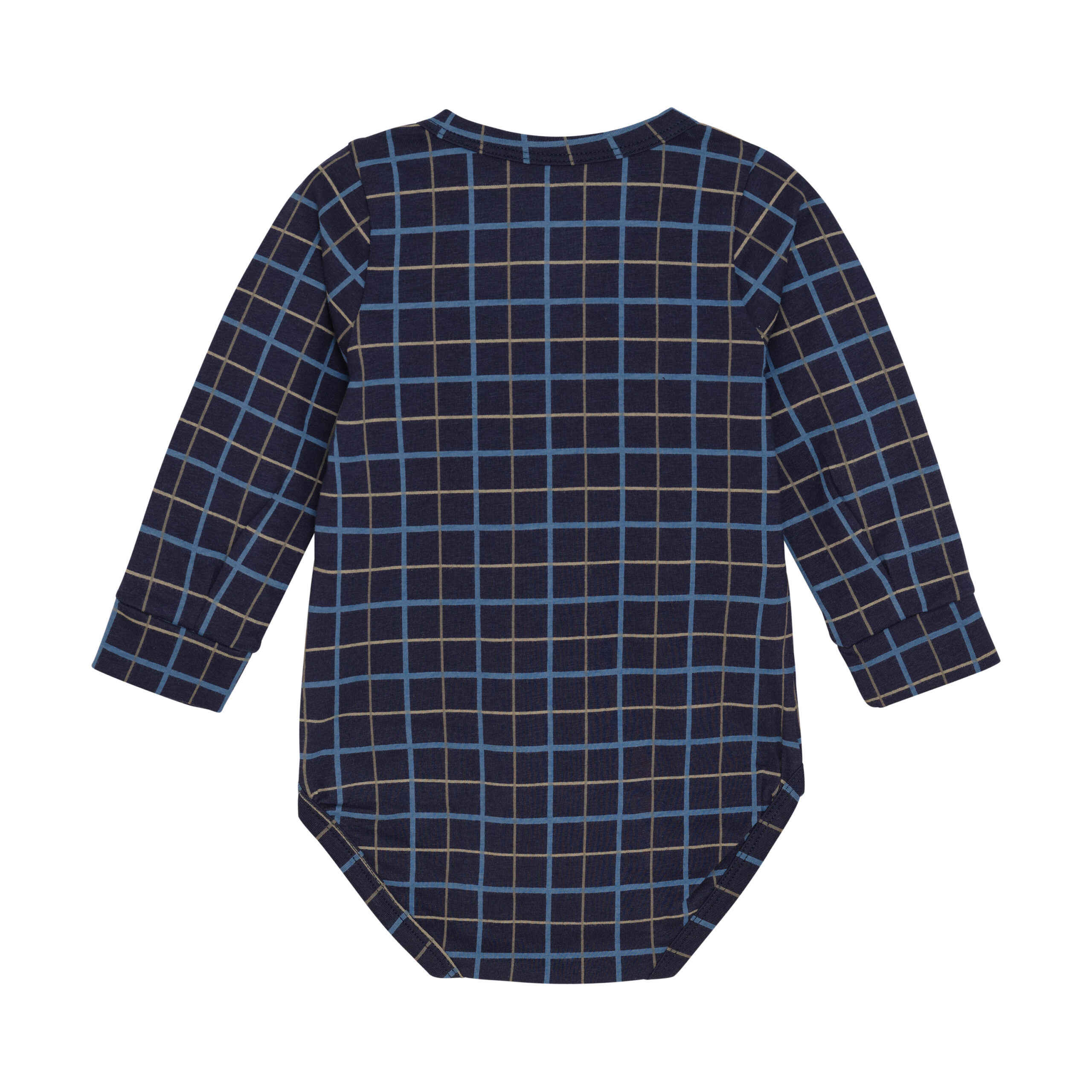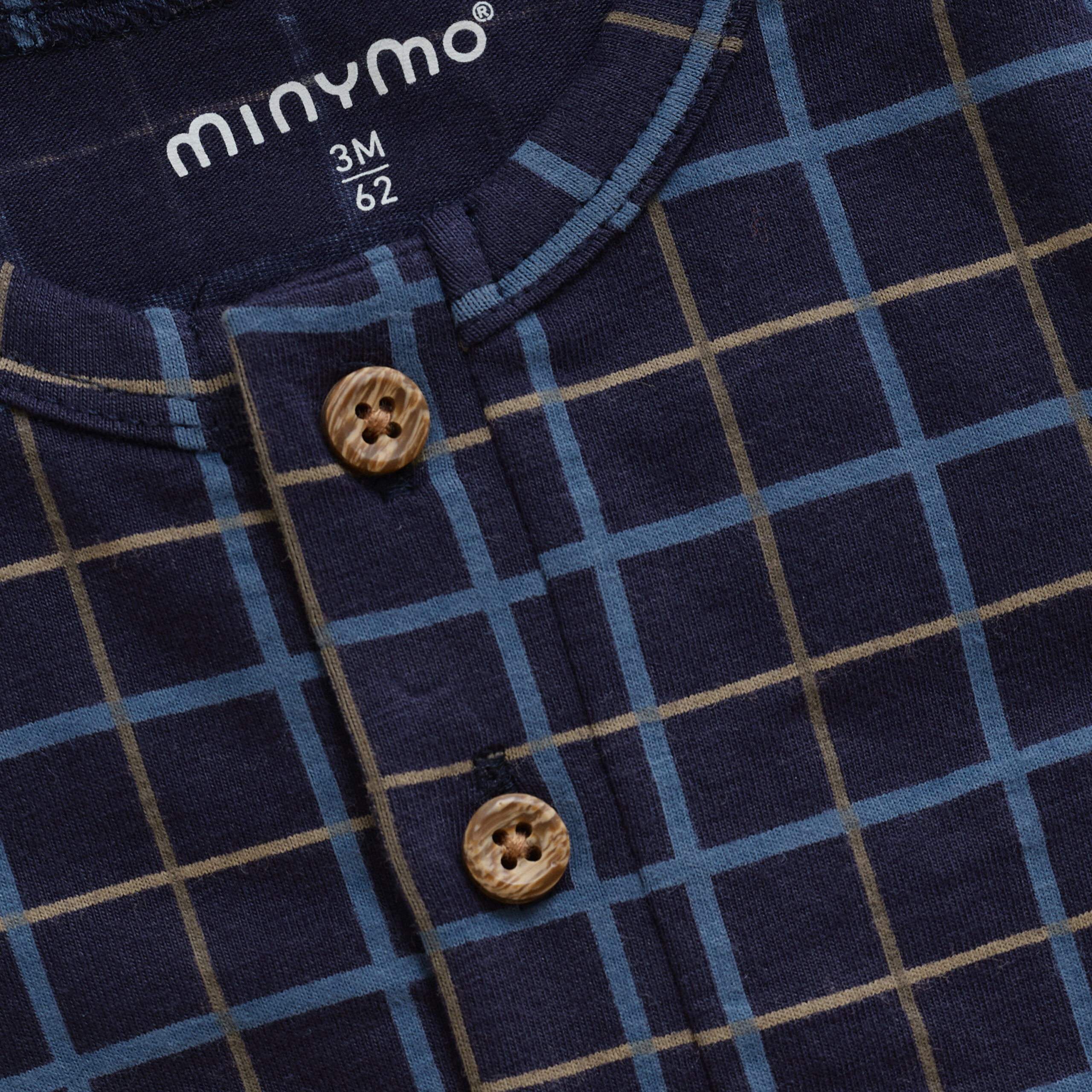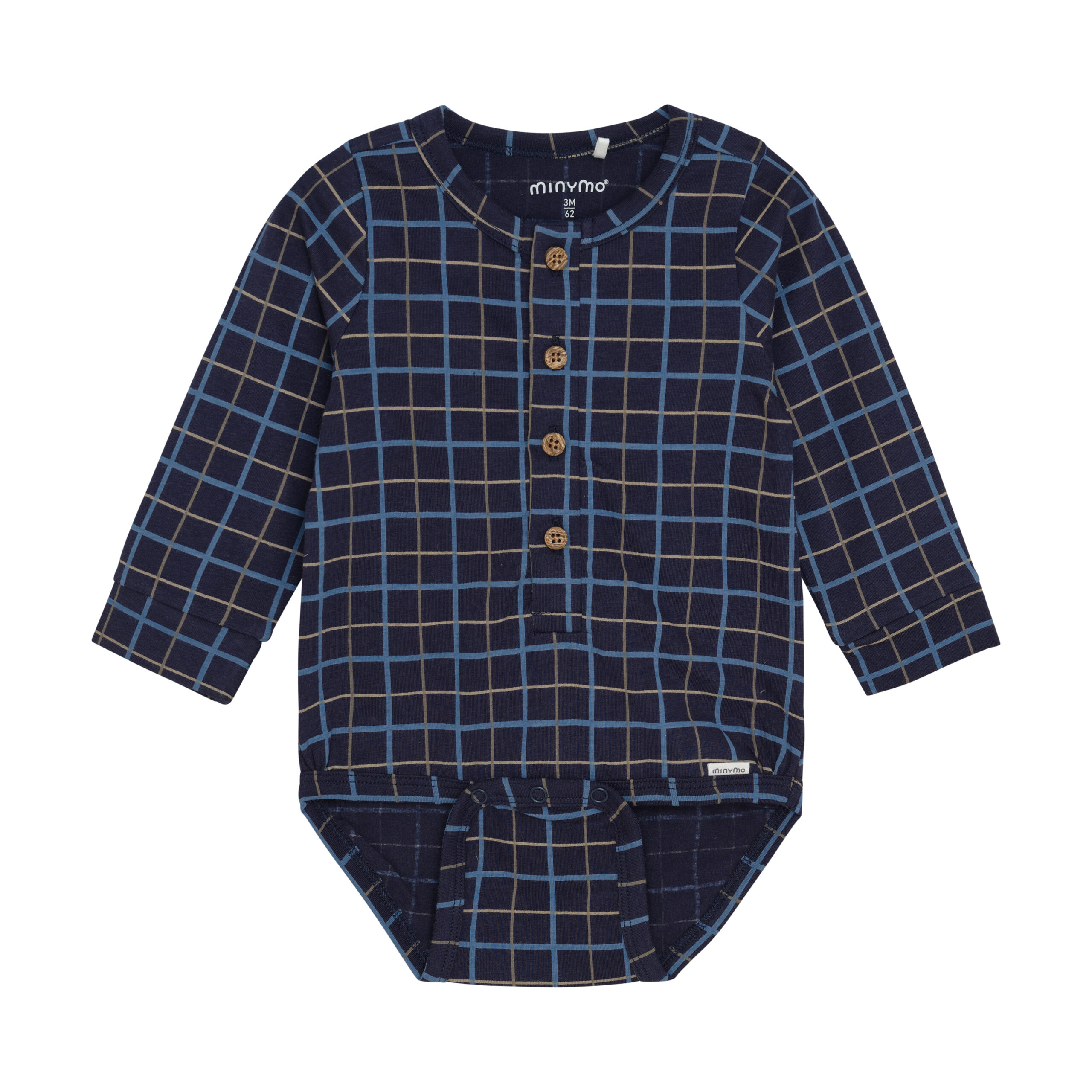 95% Cotton/ 5% Elastane – 114120 7021 – Junge – Minymo – Body LS AOP, Parisian Night – Coole langärmlige Body von Minymo. Die Body hat ein schönes kariertes All-Over-Design und Knöpfe, die bis zur Hälfte der Vorderseite reichen. Sie verfügt über Druckknöpfe im Schritt, die das Schließen erleichtern. Die Body besteht aus einer weichen Baumwollmischung, die sich angenehm auf der Haut anfühlt. Zertifiziert durch GOTS – organic CERES-0366 – Wash 40deg – No bleaching – – Tumble dry low heat – Iron low temperature – Do not dry clean –