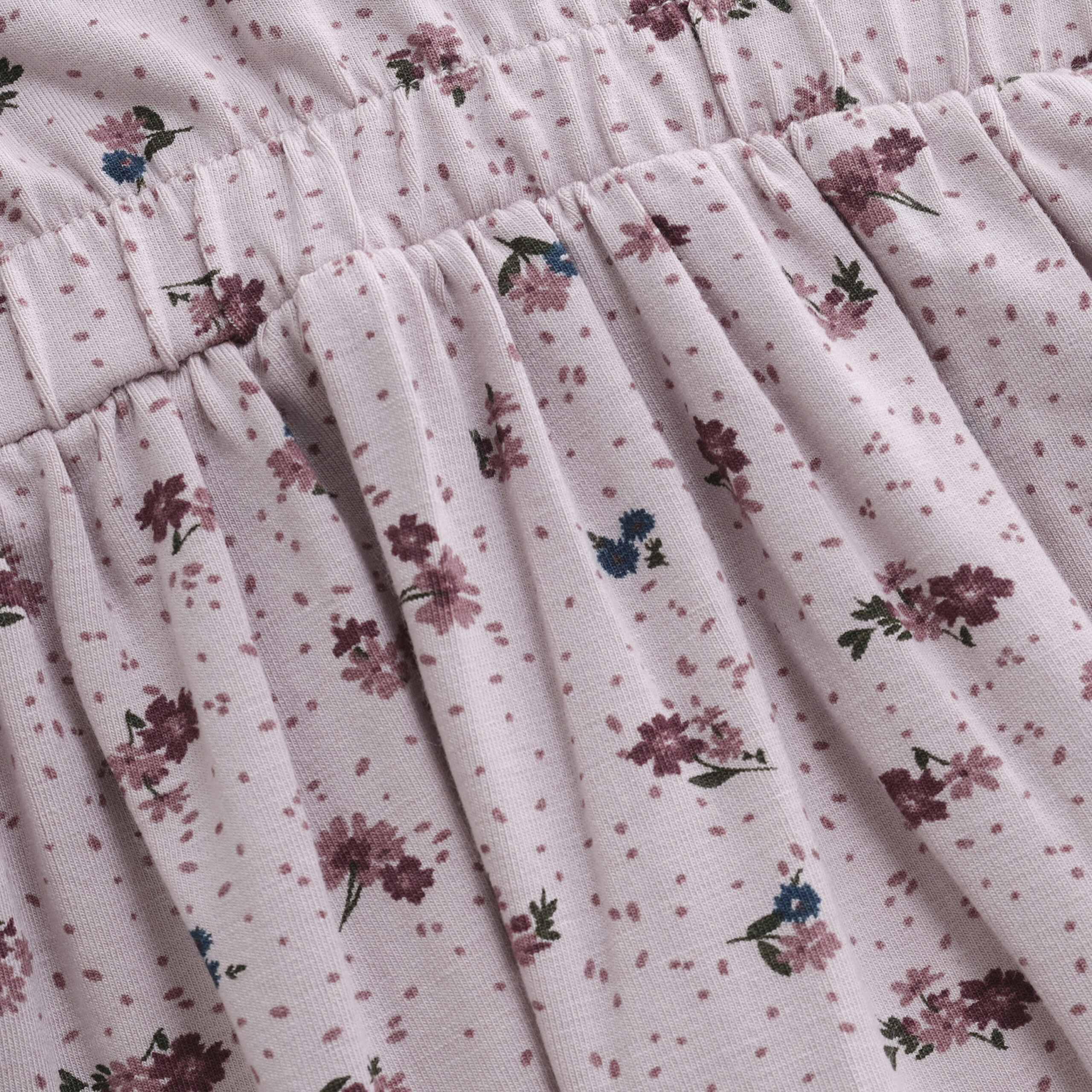 48% Cotton/ 48% Modal/ 4% Elastane – 124145 6051 – Mädchen – Minymo – Dress LS AOP , Shadow Gray – Schönes langärmliges Kleid von Minymo. Das Kleid hat ein süßes Allover-Print. Der Taillenbund des Kleides hat ein Elastikband, das ihm einen eleganten Look verleiht und für eine gute Passform sorgt. Das Kleid besteht aus einer Baumwollmischung, die angenehm auf der Haut ist. – Wash 40deg – No bleaching – – Tumble dry low heat – Iron low temperature – Do not dry clean –
