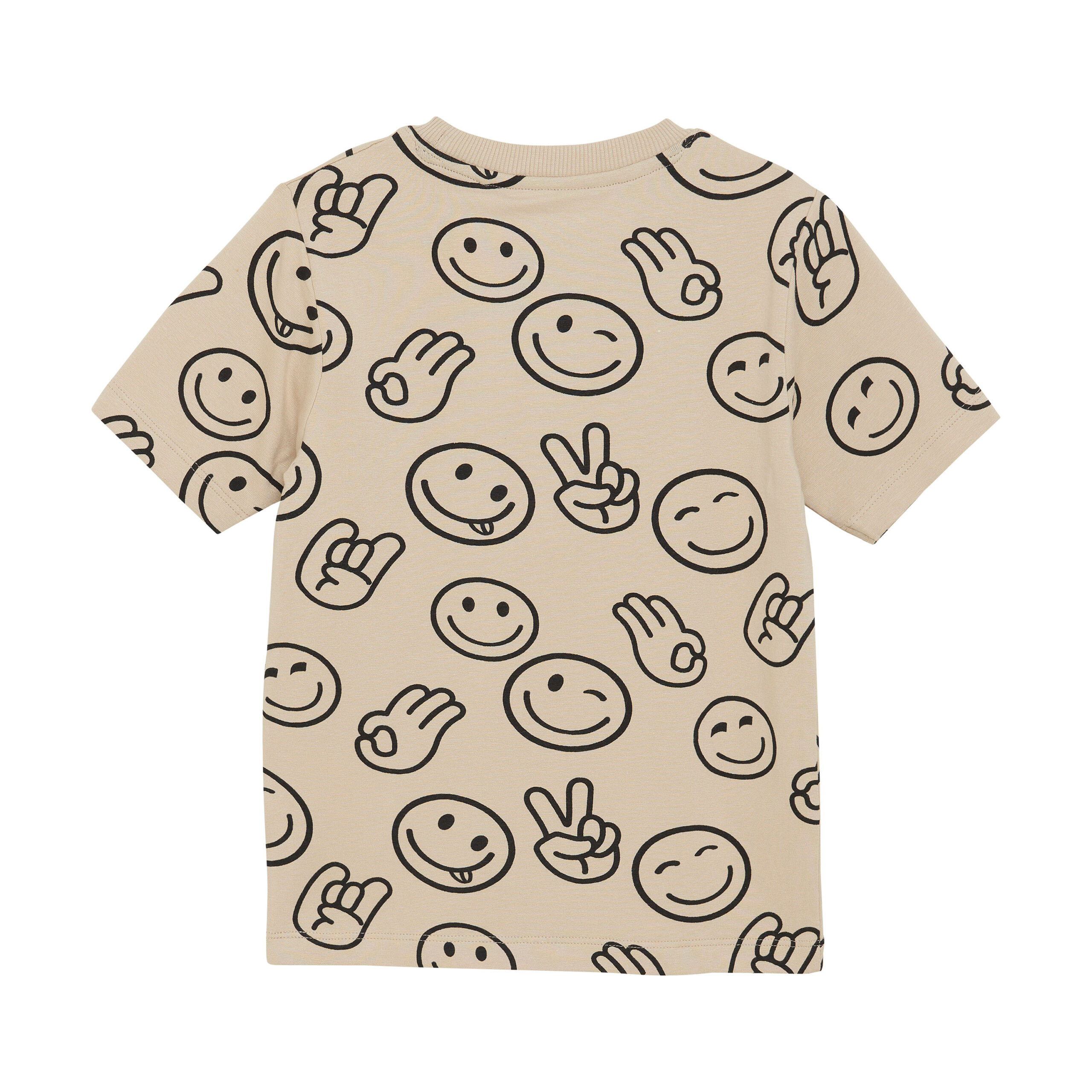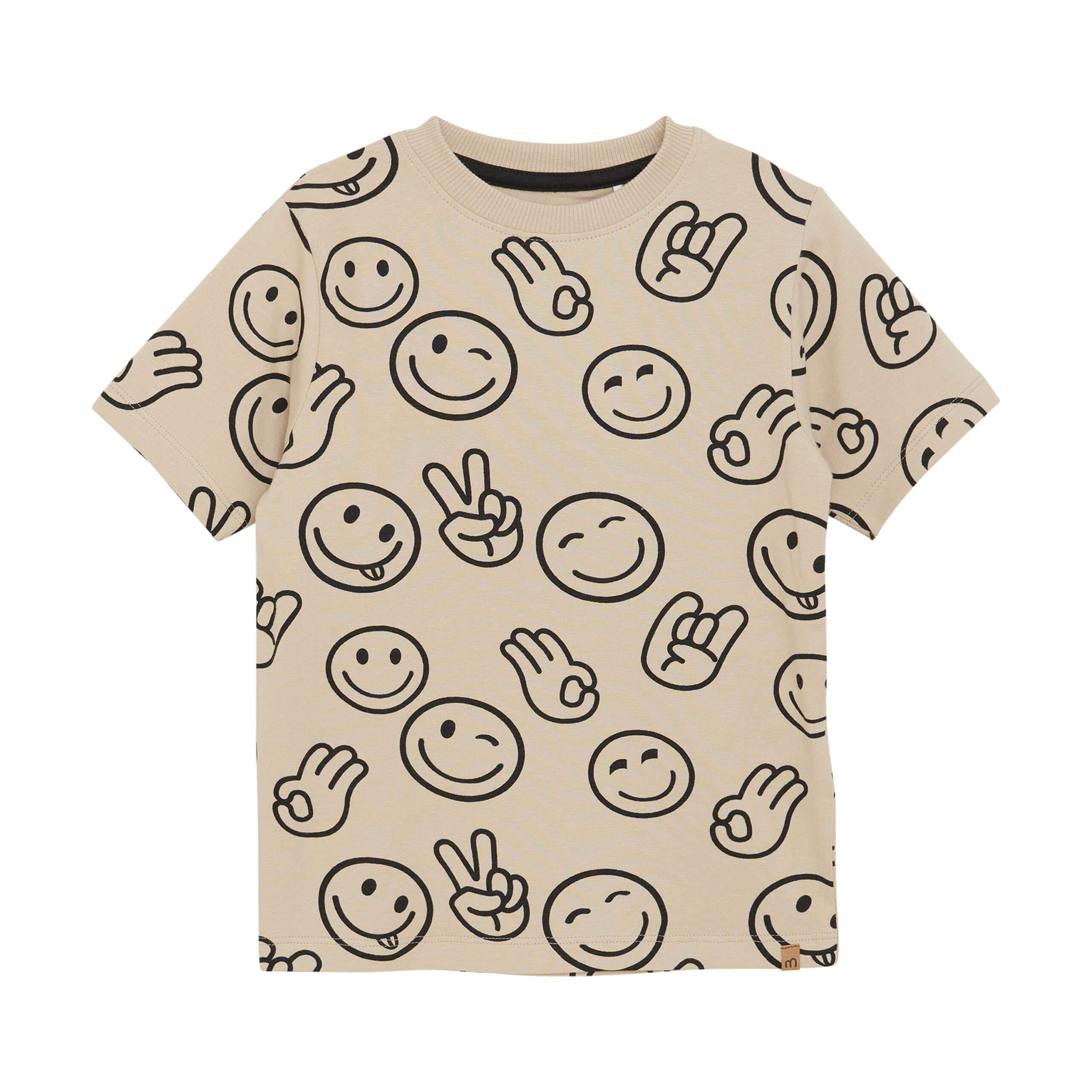 95% Cotton/ 5% Elastane – 134028 2306 – Junge – Minymo – T-shirt SS AOP, Oxford Tan – Kurzarm-T-Shirt mit Allover-Print in einem lustigen und modernen Design. Perfekt für sommerliche Aktivitäten. Zertifiziert durch GOTS – organic CERES-0366 – Wash 40deg – No bleaching – – Tumble dry low heat – Iron low temperature – Do not dry clean –