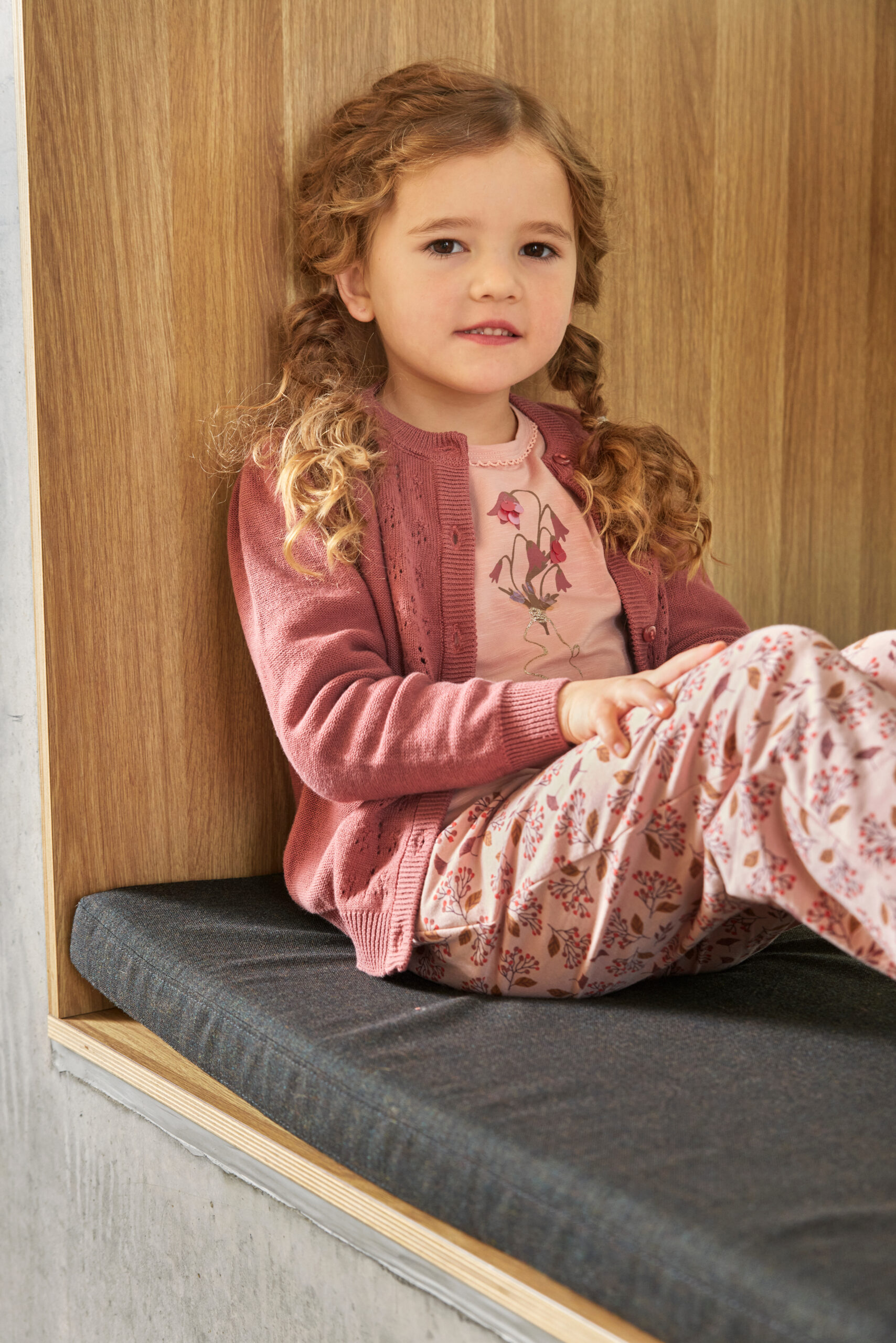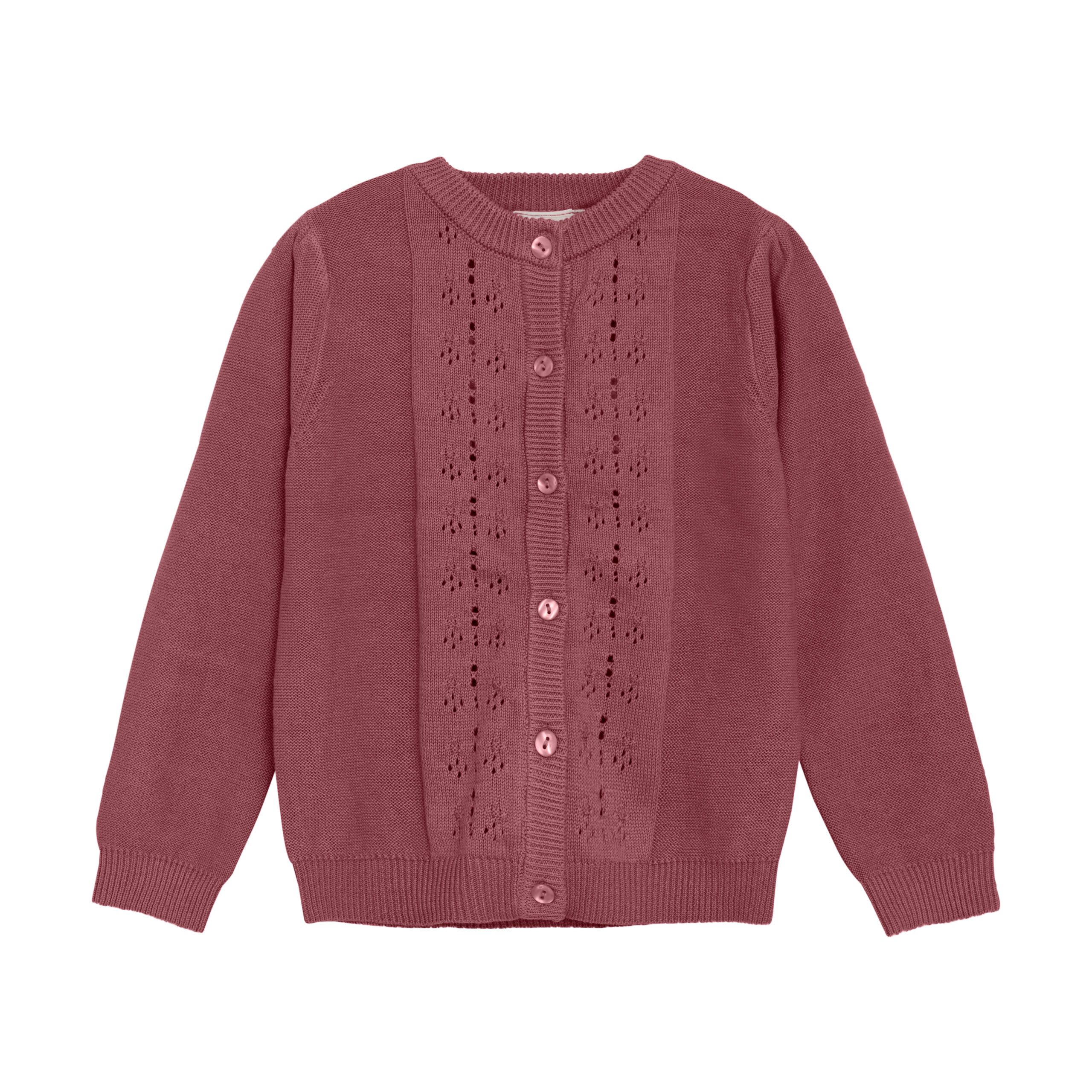 100% Cotton – 124048 4435 – Mädchen – Minymo – Cardigan Knit, Withered Rose – Gestrickte Strickjacke mit Knöpfen vorne, die Funktionalität und zeitloses Design vereint. – Wash 40deg – No bleaching – Dry flat – Do not tumble dry – Do not iron – Do not dry clean –